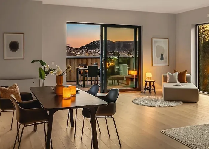 Das Hotel Ferienwohnung Large Seafront Penthouse Apt! Private Roof Terrace Bergen ist eine tolle Unterkunft im Stadtteil Bergenhus, 3 Kilometer vom Fløyen entfernt.